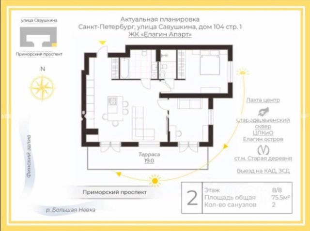 • Прямой выход к Лахтинскому разливу.