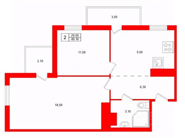 Площадь кухни 10.1 кв.м.