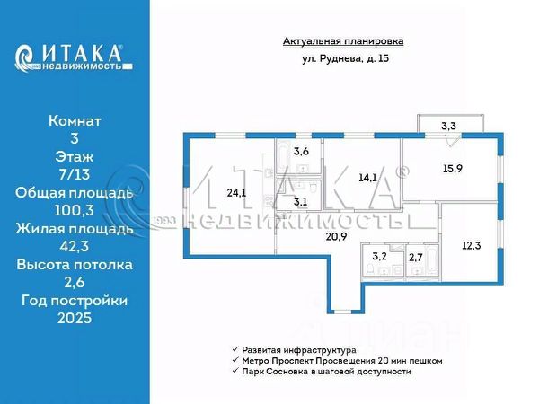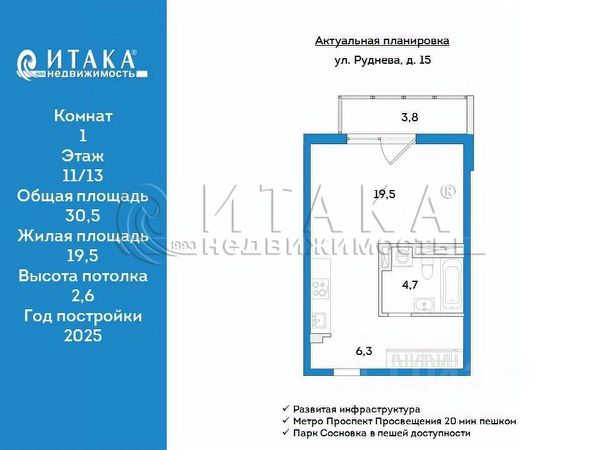 Уютная 1-комнатная квартира 46.7 м² с отличным ремонтом в тихом кирпичном доме! Ищете уютное жилье в развитом районе? Предлагаем отличный вариант! Квартира: • Площадь: 46.7 кв.м. • Этаж: 2 (малоэтажный кирпичный ЖК, всего 5 этажей). • Планировка: Просторная комната (19 кв.м.), очень большая кухня (13 кв.м.), удобный коридор (9 кв.м.), застекленная лоджия. • Состояние: Выполнен качественный, хороший ремонт можно заселяться сразу! • Вид и парковка: Окна выходят в закрытый, тихий двор. Во дворе всегда есть место для парковки вашего автомобиля. Расположение и Инфраструктура: • Район с полностью развитой инфраструктурой! В шаговой доступности от дома: Школа и детский сад (удобно семьям с детьми). Торговые центры и магазины (все необходимое под рукой). Парк для прогулок и отдыха. Фитнес-залы. • Транспорт: Ближайшие станции метро "Проспект Просвещения" и "Гражданский проспект" находятся примерно в 25 минутах неспешной ходьбы, что обеспечивает легкое сообщение с любым районом города. Документы: • Один взрослый собственник. • В собственности более 5 лет. • Нет обременений. • Материнский капитал не использовался. • Квартира подходит под ипотеку любого банка. • Есть возможность приобрести по привлекательной ставке 14,99%! Отличное сочетание уюта, удобной планировки, готовности к проживанию, тихого расположения и развитой инфраструктуры! Звоните для просмотра. Код пользователя: 183738 Номер в базе: 8547037 Продам квартиру (вторичка) на улице Руднева в Санкт-Петербурге.