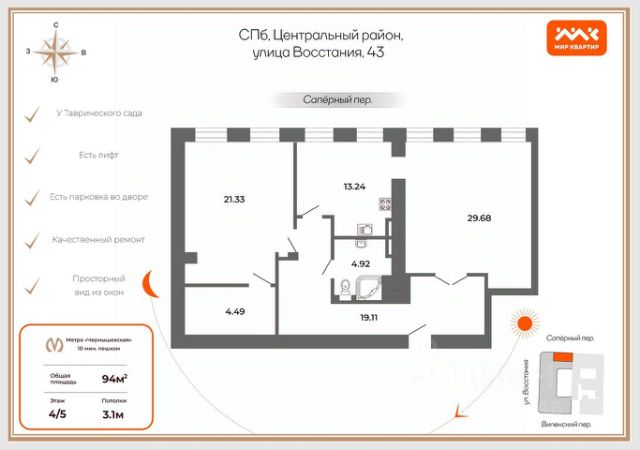 Это предложение идеально подойдёт тем, кто хочет ощутить вкус жизни в центре событий Северной столицы. В объявлении загружен 3D тур по квартире. Звоните и записывайтесь на просмотр! Купить квартиру (вторичка) на улице Восстания в Санкт-Петербурге.
