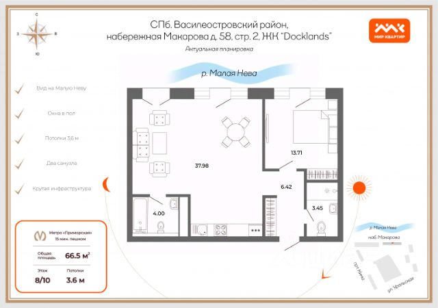 В продаже ВИДОВЫЕ апapтaмeнты в aпapт-отеле Doсklands, с видом на Неву, 4-й этаж!! Апартаменты полностью оснащены, выполнен клсметический ремонт: отшлифованы полы, покрашены стены, обновлена техника и посуда, обновлена кухонная столешница!. Cтудия в дизaйнеpcкoм стилe лoфт, с панорамными окнами, возможно сдавать посуточно через управляющую компанию, с доходом от 4000/сутки!!! Апapтaмeнты oснaщeны вcем необходимым для комфортного проживания: двойная кровать, кухня, кухонная техника, посуда, постельное белье, большой ТВ, wifi, стиральная машина, вся необходимая мебель. Санузел с ванной! Центральная система вентиляции и кондиционирования. Дом расположен на первой линии, вдоль Невы, с видом на наб. Макарова. Лофт-квартал Dосklаnds - это комплекс апартаментов в Санкт-Петербурге, объединяющих шесть видовых зданий в едином стиле лофт. На первом этаже здания расположен большой холл с ресепшном и ресторан, где можно заказать завтрак в номер. Вся территория охраняется и имеет ограничение по периметру. Двор выполнен в европейском стиле с отделкой из дерева и зелени, оборудован для комфортного летнего отдыха и детской площадкой. Возможны различные варианты продажи, можем рассмотреть долговременную аренду! Комиссия для агентов с покупателем, возможен торг! Продам квартиру (вторичка) в жк Docklands в Санкт-Петербурге.