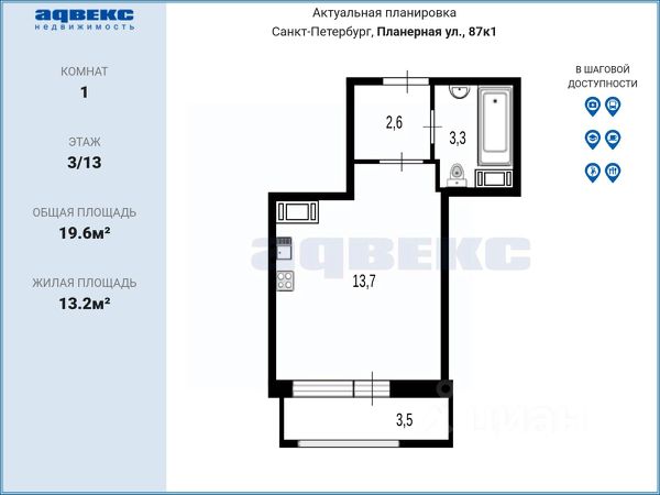 -До станции метро Комендантский проспект — 15 минут на транспорте.