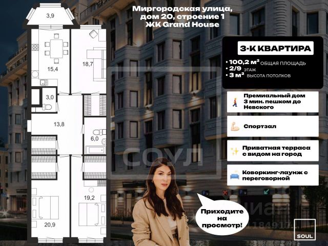 Арт. 106187858 Дорогие будущие хозяева! Перед вами не просто квартира — а пространство для счастья, где будет уютно вам, вашим детям и даже домашним любимцам! Дизайнерский ремонт от бюро "Арса интерьеры" — элегантно, дорого, на века. 161,2 м² с высокими 3-метровыми потолками и панорамным освещением. Просторная кухня-гостиная с уютным диваном (45 м²)— место для семейных ужинов и дружеских посиделок. Мастер-спальня с гардеробной и большой ванной комнатой — ваш личный уголок покоя. Две детские комнаты с гардеробными — у каждого ребенка будет свое королевство. 5 гардеробных, постирочная, 3 санузла— жизнь без бытовых хлопот. Две лоджии и французский балкон — утренний кофе с видом на город или тихий двор. Два входа— дополнительное удобство и приватность. Grand House — дом, где мечты становятся реальностью! Клубный формат— безопасность, приватность и комфорт. Закрытый зеленый двор с детской площадкой — игры на свежем воздухе под присмотром. Терраса на крыше — панорамные виды Петербурга только для жителей комплекса. Подземный паркинг (готовы предложить **семейное место + одинарное место и кладовую**) Умный дом— технологии для вашего удобства. 2 минуты — Феодоровский собор и Митрополичий сад. Рядом театр "Комедианты", арт-центры, бутики и галереи. 10 минут пешком — ТРК "Галерея" с кинотеатром и боулингом. Лучшие школы и сады — гимназия 168, 6 детских садов (включая частные) 6-9 минут до метро (Александра Невского, Маяковская, Площадь Восстания) Этот дом создан для тех, кто ценит качество, безопасность и атмосферу счастья. Здесь ваши дети будут расти в красоте, а каждый день — наполнен комфортом и радостью. Звоните! Готовы показать вам этот уютный мир. P.S. Квартира полностью готова к вашему переезду — осталось только впустить в нее любовь.