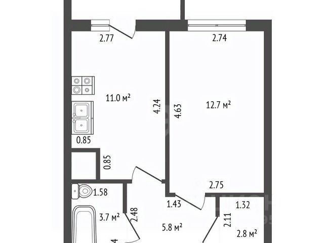 • Реальная площадь: с тёплой лоджией S=45,1 м² (38,4 м² по ЕГРН + утепленная лоджия 6,7 м² как полноценная комната).