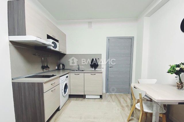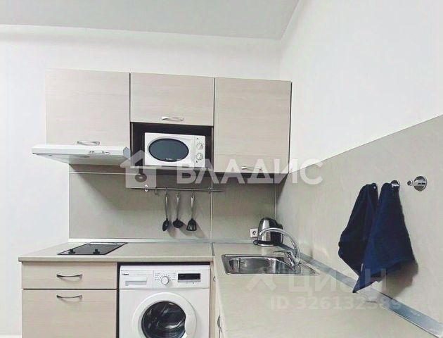 Общая площадь студии составляет 24,7 м2, кухня-гостиная 16,4 м2, прихожая 2,7 м2, совмещенный санузел площадью 3,5 м2 и просторная лоджия с панорамным остеклением и морозостойким вместительным шкафом для хранения площадью 2,1 м2.