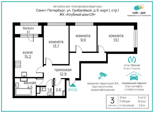 2е квартира в клубном доме у м. Лесная. Идеальный вариант для студентов и молодых семей. Санкт-Петербург, Выборгский район, ул. Грибалевой, д. 9, корп. 1, стр. 1 ЖК "Клубный дом G9", 2019 года постройки, застройщик КВС. Кирпично-монолитный дом бизнес-класса в формате клубного дома, комфорт и безопасность для тех, кто ценит качественное жильё. Закрытая охраняемая территория, подземный паркинг-удобно, если есть машина или планируете её покупку, современный двор с детской площадкой ,отличный вариант для молодых родителей, уютная атмосфера, без шумных "муравейников". В парадных предусмотрены специальные помещения, где перед входом в лифт можно помыть обувь, колёса коляски или чемодана, а также лапы домашним питомцам. Это не только удобно в повседневном использовании, но и подчёркивает высокий класс жилья, которое вы приобретаете. Квартира общей площадью 33 м² , расположена на 8 этаже 11этажного дома . Высота потолков 2,75 м, пространство ощущается значительно больше. Продуманная планировка для комфортной жизни: кухнягостиная 15 м² - сердце квартиры, здесь легко разместить полноценную обеденную зону, удобный диван/зону отдыха, рабочее место для учёбы или удалённой работы. Лоджия 3 м² с приятным видом во двор, уютное место для утреннего кофе или вечернего отдыха. Комната 11,5 м², идеальна как спальня или личное пространство. Совмещённый санузел-удобно и практично. В квартире выполнен качественный ремонт от застройщика с использованием современных и надёжных материалов: виниловые обои, ламинат немецкой марки EGGER, плитка "Керамин" коллекция "Даймонд" в санузле, сантехника Swedbe, установлены межкомнатные двери, радиаторы отопления Vogel&Noot, детские замки на окнах-дополнительная безопасность для семей с детьми, видеодомофон-контроль доступа и спокойствие за свой дом. Большой плюс: В квартире остаётся вся мебель и техника , заезжайте и живите без дополнительных затрат и ремонта. Особенно удобно для: студентов, молодых специалистов и молодых семей, которые не хотят тратить время и деньги на ремонт. Отличное местоположение для активной жизни в городе: - 8 минут пешком до м. Лесная, быстро добираться до центра на учёбу или работу - 6 минут пешком до Полюстровского сада, зелёная зона для прогулок и спорта - 3 минут пешком до ТЦ "Европолис", магазины, кафе, кино, всё под рукой Рядом с домом: школа, детский сад, фитнес-клуб, продуктовые магазины и вся необходимая городская инфраструктура. Это отличный вариант, если вы: студент(ка) и хотите жить рядом с метро, без долгих поездок, молодая пара, ищущая уютное современное жильё в развитом районе, рассматриваете квартиру и для жизни, и как инвестицию под сдачу в аренду, локация и планировка идеально подходят. Квартира юридически чистая: без обременений, никто не зарегистрирован, полная стоимость в ДКП, без занижений,1 взрослый собственник (не пенсионер). Готовы к быстрому выходу на сделку. Звоните, не откладывайте: такие варианты в клубных домах у метро Лесная долго не задерживаются. Продается квартира на вторичном рынке в Санкт-Петербурге.