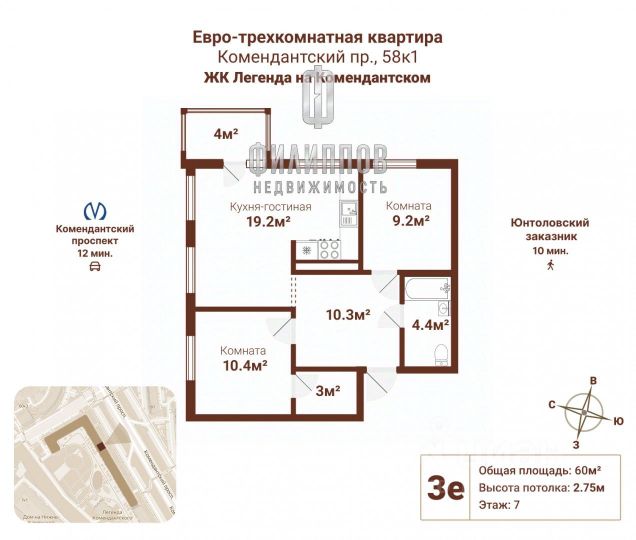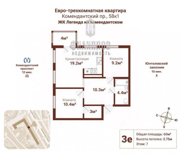 Однокомнатная квартира в ЖК Легенда на Комендантском БЕЗ КОМИССИИ для покупателя Ипотечное сопровождение- бесплатно Это квартира, где всё готово для комфортной жизни современное пространство, продуманная планировка и приятный бонус: вся мебель и техника остаются новому собственнику. Заходи и живи - без лишних хлопот и вложений. Квартира расположена на пятом этаже монолитного дома 2018 года. Высокие потолки создают ощущение воздуха и свободы, а удачная планировка позволяет использовать каждый метр максимально эффективно. Светлая кухня-гостиная плавно объединяет в себе уют и функциональность, отдельная спальня дарит приватность и тишину. Жилой комплекс "Легенда" - это не просто дом, а настоящий парк-оазис внутри города. Закрытая охраняемая территория, благоустроенный двор-парк с ландшафтным дизайном, современными детскими и спортивными площадками создают атмосферу уюта и безопасности. Для вашего удобства - двухуровневая подземная парковка, просторные колясочные, а на первых этажах - магазины, кафе, салоны красоты и другие сервисы. Здесь всё под рукой, и каждый день вы ощущаете комфорт высокого уровня. Локация - одно из ключевых преимуществ. Комендантский проспект - это развитая инфраструктура, быстрый выезд на КАД и ЗСД, удобная транспортная доступность. До метро Комендантский проспект всего десять минут на транспорте, а до станции метро Шуваловский проспект которая в 2029 году 7 минут пешком. В шаговой доступности - крупные торговые центры, фитнес-клубы, рестораны, школы, детские сады и медицинские учреждения. Всё, что нужно для жизни в большом городе, собрано в одном месте. Эта квартира станет отличным выбором для тех, кто ценит комфорт, безопасность и современный стиль. Идеальный вариант как для собственного проживания, так и для инвестиций. Звоните прямо сейчас и записывайтесь на просмотр. id:1. Продам квартиру (вторичка) в жк Legenda Комендантского в Санкт-Петербурге.