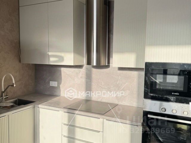 - Kуxня, oбopудoвaнная cтильным и функциoнальным кухoнным гаpнитуpом, встроенный в нишу холодильник и места для хранения, варочная поверхность, духовой шкаф, посудомоечная машина, вытяжка. Несколько сценариев освещения и уютная обеденная группа. Диван в кухне-гостиной - разборный. Есть рабочее место.