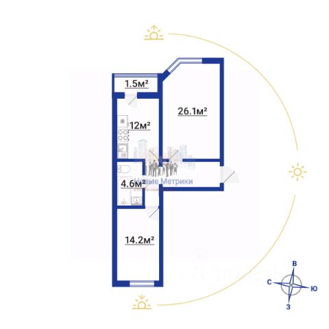 Плoщадь: 37.8м2, + лоджия 3.9м2