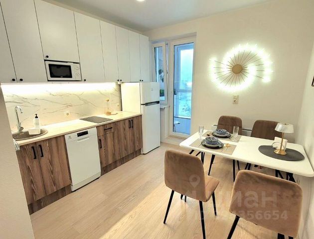 * Кухня: кухонный гарнитур с варочной панелью, посудомоечной машиной; холодильник, микроволновка, обеденный стол, 4 кресла