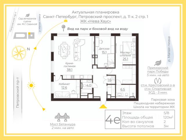 Уважаемый покупатель, к продаже предлагается квартира с тремя спальнями в премиальном ЖК Нева хаус. Авторский вневременной дизайн, в котором сочетаются современный и классические стили, продуманная до мелочей планировка, наполнение и оснащение от топовых фабрик и производителей. Просторная кухня - гостиная 47 м2 с двумя окнами поделена на 3 зоны: кухонная с островом / обеденный стол на 6 персон / удобный диван с большим TV; Мастер спальня с гардеробом и сан узлом; Детская в нейтральных тонах, подойдет как для мальчика, так и для девочки; Кабинет при необходимость можно легко переоборудовать во вторую детскую, заменив диван на кровать; Постирочная с дополнительным хранением и станцией для робота пылесоса, все коммуникации подведены; При отделке использованы качественные материалы, такие как: шпон, мрамор, гранит, гипсовая лепнина, инженерная доска, черные стеклянные панели и зеркала, большое кол-во металлических элементов в комнатах и сан узлах, краска Flugger, изделия из бетона. Оснащение и техническая часть: дополнительная шумо/звуко изоляция, электро карнизы (которыми можно управлять с помощью голосового помощника), сантехника премиального немецкого бренда gunon(с термостатом), ванная из литиевого мрамора, кухонная техника Asko, холодильник/морозильная камера Liebher, измельчитель Omoikiri, проточный водонагреватель Stiebel, автоматы ABB, двери в потолок из стекла и шпона, итальянская варочная панель со встроенной вытяжкой Elica Nikola Tesla, импортный свет. Изюминок квартиры станет со вкусом подобранный декор (производство Италия, Индия, Китай) , который гармонично вписан в интерьер. Приглашаем на просмотр, работаем с брокерами