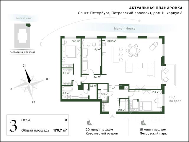 Квартира с одной спальней в премиальном жилом комплексе Neva Haus располагается в одном из лучших мест Санкт-Петербурга - Петровском острове, в окружении зелени парков и свежести воды. Площадь квартиры 48,2 кв. м. Планировкой предусмотрены большая кухня-столовая площадью 24 кв. м и просторная спальня 17 кв. м, выходящая окнами на небесную линию Петроградки, на эксклюзивный ландшафтный двор. Все окна квартиры обращены на восток, благодаря чему в квартире будет солнечно в первой половине дня. На лестничной площадке всего 4 квартиры. Комплекс Neva Haus полностью соответствует современным требованиям комфорта для проживания. В проекте реализуется концепция закрытой внутренней территории с ландшафтным дизайном и прогулочной набережной вдоль Малой Невки. Петровский остров одно из уникальных мест Петербурга, тихое, с благоприятной экологией. Располагается в Петроградском районе, между Малой Невкой, Малой Невой, Ждановкой и водами Финского залива. Остров просто утопает в зелени. В непосредственной близости находятся ухоженные, благоустроенный парк им. Савиной, Петровский парк, основанный при Екатерине Второй. В пешей доступности расположился Крестовский остров с такими доминантами, как Зенит Арена и Сибур Арена, Приморский парк Победы. Транспортная логистика позволяет беспрепятственно добраться в исторический центр города или выехать за город в направлении Курортного района. Мост Бетанкура соединяет район с Васильевским островом и ЗСД и позволяет в любое время суток добраться до аэропорта Пулково за 20-25 минут. Петровский остров - новая престижная локация для жизни в Петербурге!