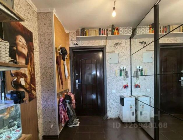 В прихожей установлен вместительный шкаф-купе с полками в потолок и штангой для верхней одежды.