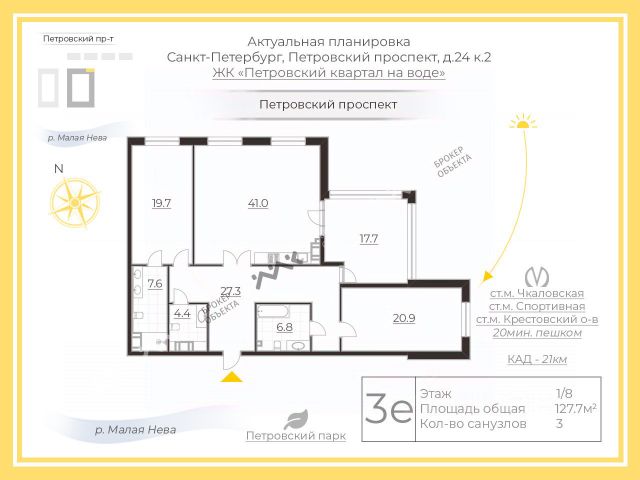 Петровский квартал на воде — уникальная локация, гармонично сочетающая современные тенденции архитектуры и дизайна с комфортом проживания в живописной природной среде. Предлагается к продаже стильная, комфортабельная и идеально продуманная квартира, отражающая самые высокие стандарты качества и удобства. Здесь каждый элемент интерьера создан для максимального комфорта и эстетического удовольствия. Интерьер квартиры отличается изысканным дизайном и безупречным вкусом. Пространство наполнено светом благодаря большим окнам, создающим ощущение простора и свободы. Стены украшают натуральные отделочные материалы высокого класса, подчеркивающие индивидуальность каждого помещения. Мебель и бытовая техника от ведущих мировых брендов придают интерьеру особую атмосферу роскоши и функциональности. Просторная гостиная с кухней располагает к приятному отдыху и дружескому общению. Два больших окна наполняют комнату естественным светом, создавая атмосферу уюта и тепла. Мастер-спальня оборудована удобной гардеробной и эргономичным рабочим кабинетом. Санузел оснащен качественной сантехникой известных марок. Особое внимание уделено техническим аспектам жилья. Установлена современная система вентиляции с функцией кондиционирования воздуха, гарантирующая оптимальный микроклимат круглый год. Бытовая техника премиум-класса BOSCH и Electrolux. Окна гостиной открывают живописный вид на зеленые насаждения, а спальню украшает прекрасный пейзаж водной глади. Дополнительно к квартире предлагается удобное парковочное место в подземном паркинге. Эта квартира станет идеальным выбором для тех, кто ценит качество, комфорт и красоту. Петровский квартал на воде располагается в Петроградском районе, прямо на берегу Малой Невки. Это одно из самых престижных мест города, которое привлекает своей близостью к историческому центру и уникальной водной перспективой. Рядом находятся все необходимые объекты инфраструктуры: супермаркеты, аптеки, салоны красоты, рестораны и кафе. Здесь также легко добраться до основных достопримечательностей Петербурга пешком или на общественном транспорте. До ближайших станций метро "Крестовский остров" - можно дойти всего за несколько минут. Панорамные окна открывают потрясающий вид на реку Малую Невку и Крестовский остров. Благодаря расположению рядом с водой воздух здесь свежий и чистый. Удобная транспортная развязка. Прогулки вдоль набережных, посещение музеев и театров создают особую атмосферу культурной столицы. Рядом находится парки, велодорожки и места для занятий спортом на открытом воздухе. Купить квартиру (вторичка) в жк Петровский квартал на воде в Санкт-Петербурге.