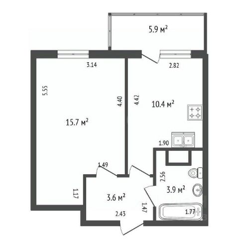 Полная стоимость в договоре. Жилая площадь 32,5 м2 + балкон 6,6 м2.