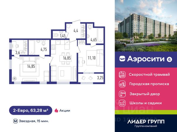 Кирпично-монолитный комплекс с уникальными планировочными решениями, в котором все квартиры предусматривают полную отделку "под ключ". В доме установлено лифтовое оборудование OTIS со спуском в паркинг, IP-домофония, есть охрана, выполнена коллекторная разводка отопления. Закрытый двор с детскими и спортивными площадками. В каждой парадной есть помещение для колясок и велосипедов, магазины, пекарни и ПВЗ на 1-м этаже. Две школы и два детских сада работают прямо через дорогу. Строится две поликлиники и линия скоростного трамвая. 20 минут на автобусе до двух станций метро "Звездная" и "Купчино", городская прописка. Квартиры с полной отделкой, 2 школы и 2 детских сада рядом с домом.100 машино-мест в подземном паркинге - лифты спускаются в паркинг.