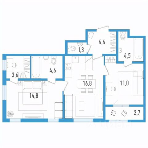 Все это делает квартиру очень удобной для жизни и привлекательной для арендного бизнеса.