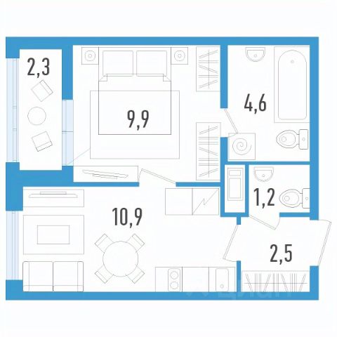 Площадь квартиры 18.20 + балкон 3.60 кв.м. в Шушарах, в развитом и престижном районе СПб