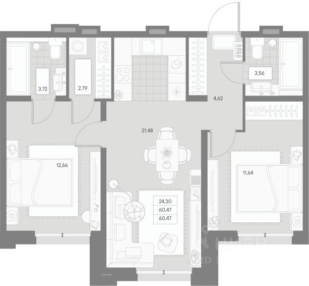 В центре Петербурга на берегу реки Охты представлена 2-х комнатная квартира на 6 этаже общей площадью 52.76 кв.м. Дом бизнес-класса в креативном центре Петербурга на берегу реки Охты и 25 минутах пешком до Невского проспекта и 17 минутах пешком до м. Новочеркасская. Неповторимая и цельная атмосфера места. Река, которая обнимает дома, дышащие фасады из натуральных материалов, парк с родниками и травами во дворе и уникальная пластичная архитектура созвучны характеру современного города. АЛЬПЕН - дом твоего равновесия. - Приватные корпуса; - Выразительные фасадные решения; - Декоративная подсветка фасада; - Панорамные террасы с видом на реку Охта; - Квартиры с верандами формата high flat; - Витринное остекление. Внутренний двор, набережная и прилегающие территории образуют цельную эко среду, идеальную для комфортной, насыщенной новыми впечатлениями и эмоциями, динамичной жизни. Авторский двор-парк, переходящий в набережную - живописное природное окружение с тропами, променадом и увлекательными маршрутами для путешествий. Холлы и общественные пространства - продолжение парка. Авторское прочтение общественного пространства от московского дизайн бюро STUDIO 211 с первых минут позволяет ощутить ценность равновесия. АЛЬПЕН - для тех, кто ценит близость центра, уединенность и природную энергетику. - Семейная ипотека 4,3% на весь период кредитования. Ипотека предоставляется Сбербанком. Сумма кредита до 12 млн рублей, первый взнос от 20,1%. - Рассрочка на 2/6/12 месяцев.