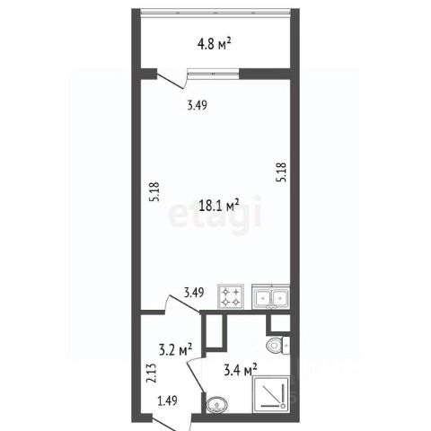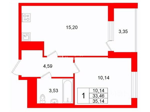 Вариант подходит как для сдачи в аренду, так и для собственного проживания 1 человека или семьи с детьми.