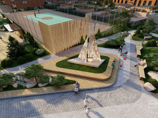Детский сад с бассейном, стадион, спортивные и детские площадки на территории ЖК.