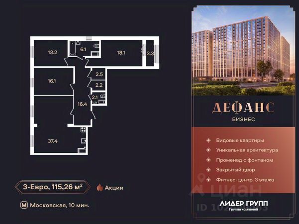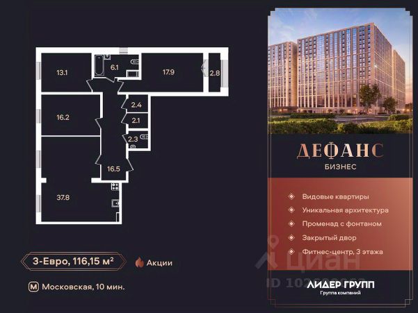 Ваша квартира — это идеально продуманное пространство: - ВИДОВАЯ СТОРОНА — из ваших окон открываются прекрасные виды на город. - ДВЕ ЛОДЖИИ, ОДНА ИЗ НИХ ИЗ КУХНИ — дополнительное пространство для утреннего кофе или вечерних игр с детьми. - УДОБНАЯ НИША ПОД ШКАФ ПРИ ВХОДЕ — сразу решает вопрос с хранением вещей. - БОЛЬШАЯ КУХНЯ-ГОСТИНАЯ 37,7 М² — идеальное место для семейных обедов, приёмов гостей и создания уютной атмосферы. - ДВА ОКНА В КУХНЕ-ГОСТИНОЙ — многократно усиливают ощущение простора. - ОКНО В ВАННОЙ КОМНАТЕ — редкая особенность, которая обеспечивает естественную вентиляцию и наполняет пространство природным светом. - СЕМЕЙНАЯ СЕКЦИЯ — всего 5 квартир на этаже. - ДВЕ ВЫДЕЛЕННЫЕ ГАРДЕРОБНЫЕ ЗОНЫ — идеальное организационное решение для хранения вещей. - ПАНОРАМНЫЕ ОКНА В ПОЛ — дарят квартире максимальное количество света и открывают прекрасные виды. - ДВА САНУЗЛА — ключевое удобство для совместного проживания. - КВАРТИРА НА ДВЕ СТОРОНЫ — открываются виды на благоустроенный двор и на город. А также в составе проекта есть собственный театр с новейшей акустической системой, кинооборудованием, теннисный корт и фитнес-центр площадью 2700 кв. м с двумя бассейнами и зоной СПА. Всё это — в шаговой доступности. ЖК "Дефанс Бизнес" — это воплощение современного комфорта и высоких стандартов петербургской архитектуры. Элегантный дом в виде замкнутого каре с архитектурной подсветкой карниза расположился в комфортном удалении от оживлённой ул. Типанова, всего в 10 минутах ходьбы от Московской площади и станции метро "Московская". Приватная территория ЖК закрыта от посторонних и машин, здесь разместился уютный двор с зонами для игр, отдыха и арт-объектом "Солнечный парус". Променад, пять фонтанов с подсветкой и таинственный сад делают этот проект местом, где хочется жить любому успешному петербуржцу! ЖК "Дефанс Бизнес" предлагает просторные кухни-гостиные, новейшие инженерные системы, дизайнерские холлы и консьерж-сервис. Дом сдан. Успейте купить по выгодной цене!