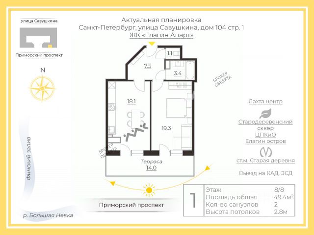 Арт. 128603734 Вашему вниманию представляю видовые апартаменты с террасой, с которых открывается панорамный вид на город, Елагин Парк, р. Большая Невка, Газпром Арену, Колесо обозрения, на праздничные салюты. Особенностью этих апартаментов является собственная терраса 19 кв.м. с зоной для барбекю, где с удобством можно расположить всю семью или компанию друзей. Правильная планировка разделяет пространство 75,5 кв.м. на зону прихожей, гостиную, изолированную мастер-спальню и так же гостевую или детскую спальню, два санузла придают дополнительный комфорт для проживания. Квартира полностью меблирована премиальной техникой и материалами. Закрытая охраняемая территория, подземный паркинг, при желании управляющая компания от отеля. Быстрый выход на сделку, один собственник. При запросе могу прислать летние солнечные фотографии. Жду Вас на просмотр, не упустите шанс стать владельцем квартиры мечты! Квартира квартир в Елагин Апарт в Санкт-Петербурге.