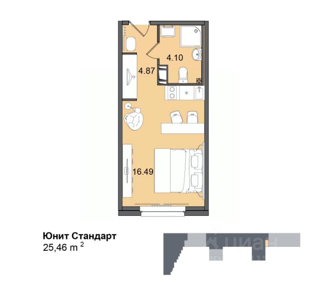 • ✅ Минимальная площадь: 22,2 м² м² (студии в наличии)