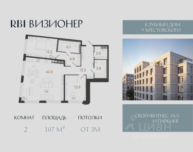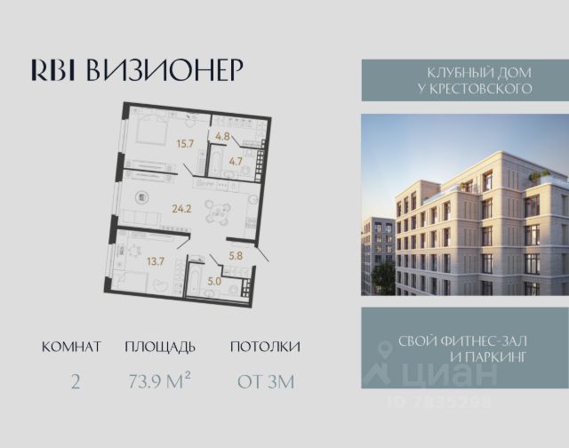 "Визионер" — новый дом элит-класса от RBI в самой престижной локации Петербурга на Петроградской стороне. Рядом — парки Крестовского и Петровского островов, яхт-клубы, бизнес-центры, частные школы и бутики Большого проспекта Петроградской стороны. Камерность поддерживается за счёт деления дома на три разновысотных корпуса и небольшого количества квартир — в доме их всего 225, от 32 до 147 м². Планировки — с большими кухнями-гостиными, мастер-спальнями и функциональными эркерами. На верхних этажах — квартиры с потолками 3,3 м и видовыми террасами: отсюда открывается вдохновляющая панорама исторического окружения Средней Колтовской и Глухой Зелениной улиц. В квартирах — большие алюминиевые окна с накладками из массива дерева. Все лоты продаются без отделки. Элегантное сочетание матового клинкерного кирпича и линеарных объёмов фасадов отсылает к характерным конструктивистским нюансам промышленной архитектуры исторического Петербурга, в особенности здания силовой подстанции фабрики "Красное Знамя", которое располагается рядом. Мягкие линии скруглённых углов гармонируют с плавными изгибами эркеров, а акцентный портал парадного входа приглашает в лобби, сквозь витражные окна которого открывается новая перспектива знакомой локации. Специально для "Визионера" архитектор Евгений Герасимов разработал эксклюзивный паттерн по типу шахматной клетки. Этот орнамент отражает особый визионерский нрав дома и прослеживается не только в перфорированных панелях, которые структурируют пространство лобби, но и в декоративных нишах фасада. Ещё одним украшением парадного вестибюля станет серия интроспективных керамических панно художницы Юлии Клоповой: первое в своей визуальной форме воплощает интуицию, второе — стратегию. Для жителей оборудуют подземный паркинг на 153 машиноместа с усилением сигнала мобильной связи. На первом этаже — собственный фитнес-зал (158 м²) с выделенной зоной тренажёров, секцией для йоги, душевыми и оборудованным массажным кабинетом. В каждой парадной предусмотрены колясочные. Отдельно можно докупить кладовую. В приватном дворе разобьют пейзажный сад со взрослыми деревьями и многолетними кустарниками — всего 4500 растений, которые сохранят привлекательность круглый год. Здесь появятся деревянные скамейки, лёгкие металлические столы и стулья, уличные светильники-торшеры, чтобы во дворе можно было не только подышать свежим воздухом, но и поработать — свободный Wi-Fi на территории. В зоне "зелёной комнаты" установят уличные обогреватели. Детские игровые площадки удалены от мест релаксации и оборудованы развивающими элементами от Richter RUS. В Петербурге игровое оборудование Richter эксклюзивно представлено в домах RBI и в "Новой Голландии". Двор без машин полностью огорожен и охраняется круглосуточно. Вход на территорию — по бесконтактному цифровому ключу. "Визионер". Дом, достойный взглядов.