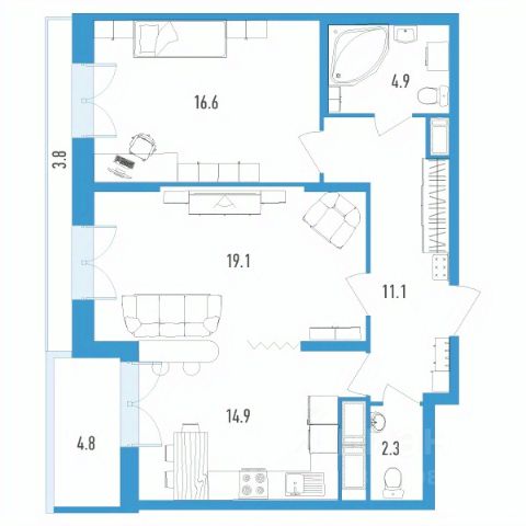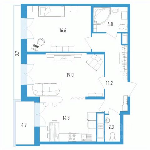 Квартира в 18-этажном доме класса Комфорт+ с современной архитектурой, построенном по кирпично-монолитной технологии, с авторским дизайном мест общего пользования.