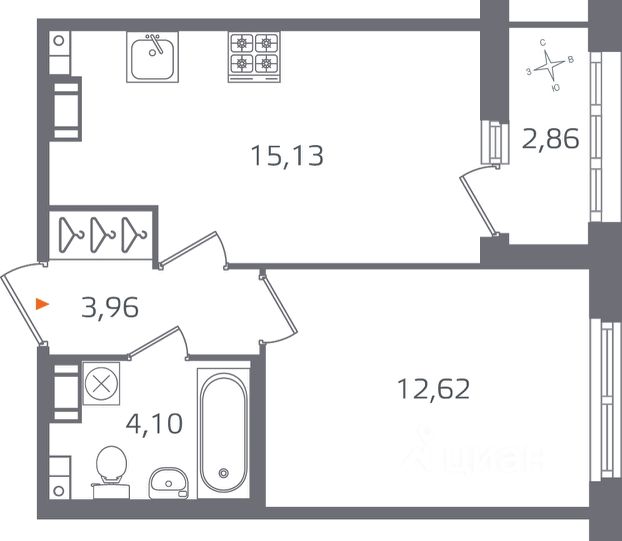 Продается видовая однокомнатная квартира в жилом комплексе бизнес-класса "Б15"!