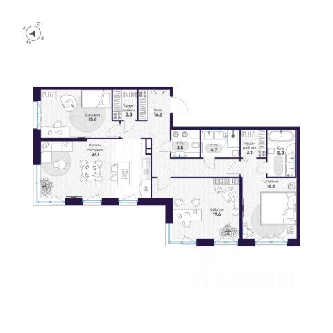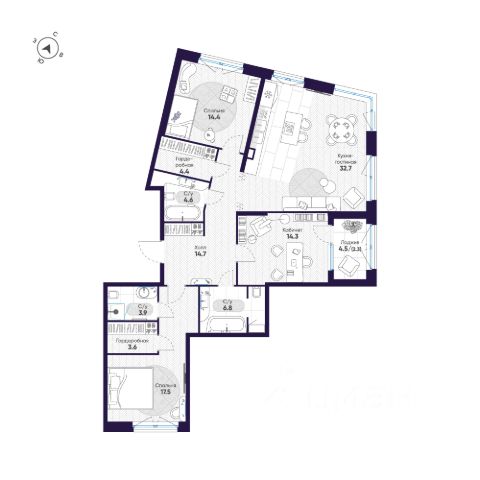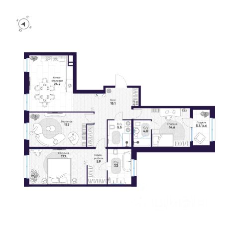 Полноценная трехкомнатная квартира: