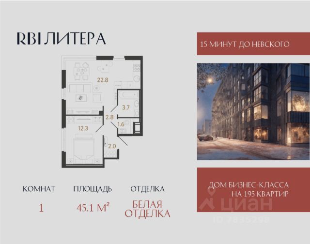 Клубный дом "Литера" от RBI. Новая "Литера" вашей жизни Камерный проект бизнес-класса на 195 квартир строится в 6 минутах от метро "Елизаровская" в непосредственной близости от исторического и делового центра Петербурга. Дом располагается в 700 м от набережной Невы по Большому Смоленскому проспекту: встречать рассветы и провожать закаты, наслаждаясь захватывающей панорамой города и зелёным окружением Невского района, можно из окон собственной квартиры! До Московского вокзала и центральной части Невского проспекта — 15 минут с учётом пешей прогулки до "Елизаровской" от дома. Добраться на автомобиле можно за то же время. До аэропорта "Пулково" 23 км. Дом состоит из двух 12-этажных секций, которые располагаются друг напротив друга, и ещё двух 8-этажных. Вместе секции образуют букву "Л" — форма дома отсылает к его названию. Планировки — от студий до просторных евро-четырёхкомнатных. Площадь квартир — от 24 до 121 м², высота потолков на типовых этажах — 2,8 м. На верхних этажах располагаются квартиры с террасами. Для романтиков — квартиры с эркерами. Для ценителей функциональных планировок — квартиры с выделенной рабочей зоной кухни и большой гостиной-столовой, планировки с мастер-спальнями и гардеробными. Ритмичную архитектуру в стиле лофт дополняют характерные "литеры" эркеров. Основной объём внешних фасадов из красного кирпича обеспечивается за счёт фламандской 3D-кладки и декоративных рустов. Со двора фасады выполнены в светлых тонах — чтобы усилить ощущение простора и безопасности. Единая дизайн-концепция продолжается в лобби дома. Сочетание тёплого кирпича с холодным металлом и стеклом создаёт харизматичное, брутальное настроение интерьера парадной группы. Чёткость вертикальных объёмов смягчается округлыми формами стойки ресепшн и декоративных куртин, а большие витражные окна создают иллюзию бесконечности пространства. Придать мыслям стройную форму можно будет в специально оборудованной зоне коворкинга только для жителей. Здесь же в лобби со свободным Wi-Fi появится зона ожидания для гостей и уникальный арт-объект от Владимира Абиха. Диптих из объёмных оттисков друг друга при наложении образует единое целое и запечатывает в себе фразу "Между нами". Эта инсталляция — метафора общности между нами, воплощение в искусстве объективной истины о том, что хотя вокруг много людей, лишь с немногими ощущаешь неподдельную связь и самого себя кем-то цельным. Вход на приватную территорию — по электронному ключу бесконтактного доступа. Во дворе высадят взрослые деревья и цветущие растения, оборудуют зону для занятий спортом, места отдыха для взрослых и экологичную детскую площадку с развивающими элементами для малышей и подростков. Двор без машин — можно отпускать детей на прогулки и не переживать за их безопасность. Для жителей оборудуют тёплый подземный паркинг, велопарковки и колясочные. На охраняемой территории у дома появится гостевая стоянка. Дом "Литера". Для авторов своей жизни