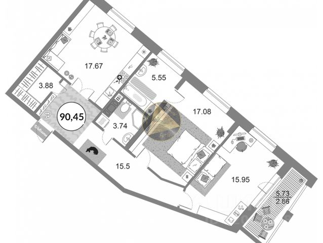 Арт. 99256025 Продается квартира 3 евро, в ЖК Modum, с шикарной и редкой планировкой.