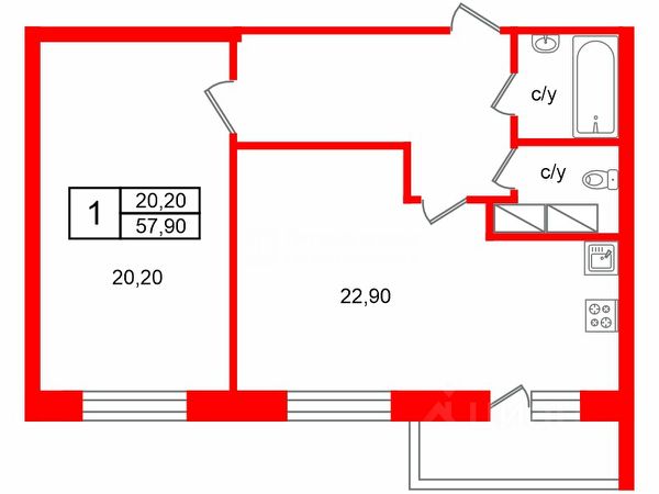 кухня - гостиная 23.63м2 , спальня 12.39м2, с/у 4.82м2, гардеробная 3.76м2 и коридор 5.08, лоджия 3.51м2