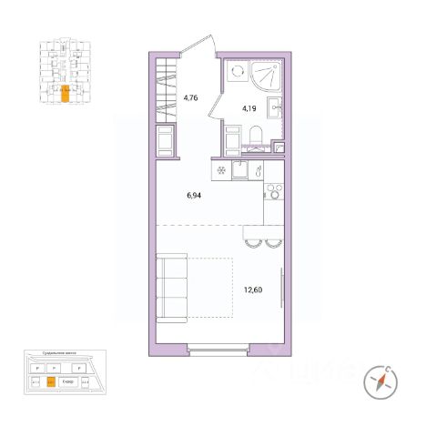 Продается квартира-студия 76 в ЖК ОКЛА