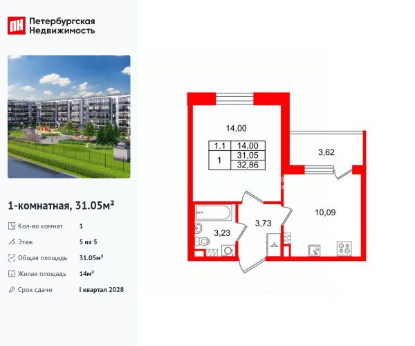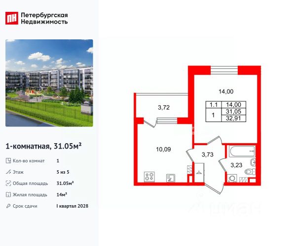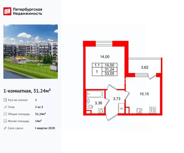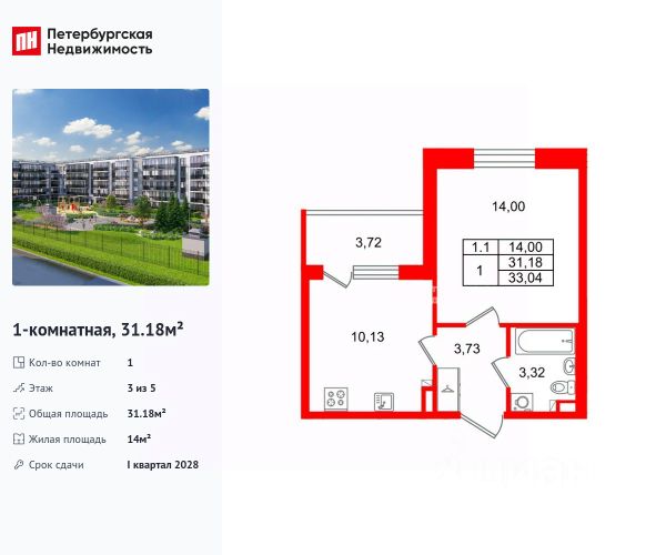 Продается уютная 1-комнатная квартира от застройщика в жилом комплексе "Парадный ансамбль" в престижном Московском районе. До метро можно добраться на транспорте всего за 20 минут. Удобная, классическая планировка, кухня 10.13 м², вместительная прихожая 3.73 м². Общая площадь квартиры - 31.18 м², жилая 14 м², высота потолка 2.77 м. Квартира продается с отделкой "Норд Лайн светлый". Что особенного в ЖК "Парадный ансамбль"? • Уникальные квартиры. Хай Флет (High Flat) на последних этажах, палисадники у квартир на первом этаже, семейные секции, квартиры с саунами и окном в ванной • Масштабное малоэтажное строительство в престижном Московском районе • Рекреационные зоны: парадный парк в центре квартала, ручей с собственной набережной, центральная площадь, ресторанный комплекс и пешеходный бульвар • Фасады из керамогранита и кирпича с яркими и акцентными входными группами • Две самые большие площадки Setl Kids и Setl Sport • Инновационный Лицей Setl с оригинальной архитектурной концепцией и уникальной образовательной средой