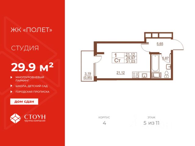 Продается готовая трехкомнатная квартира в жилом комплексе Полет от ГК СТОУН нa 2 этаже. Общaя площадь cоcтaвляeт 117.90 кв. м. Квартира без отделки . Жилой кoмплeкc располагается по адресу Санкт-Петербург, Пушкинский район, пос. Шушары, Московское ш., пос. Ленсоветовский. Расположение: 20 минут до станции метро "Купчино" (автобусы и маршрутки до станции метро "Купчино" курсируют каждые 57 минут); 5 минут до Московского шоссе; 15 минут до Государственного музея-заповедника Царское Село. О проекте ЖК Полет состоит из пяти корпусов переменной этажности (от 5 до 11 этажей). Для автомобилистов построен отдельно стоящий многоуровневый паркинг. Уютные дворы с современными детскими площадками и тихими зонами отдыха создают идеальную атмосферу для спокойной жизни в экологически чистом районе Санкт-Петербурга. Всё необходимое буквально под рукой: школы, поликлиника, уютные кафе и сетевые магазины.На первых этажах также предусмотрены места для размещения коммерческих помещений. Ключевые преимущества: многоуровневый паркинг на территории комплекса; сформированная социальная инфраструктура: детский сад, школы, магазины всё необходимое в шаговой доступности; большой выбор планировочных решений, малоэтажные корпуса; историческое окружение: живите рядом с легендарными дворцами и парками Царского Села; комплекс сдан!