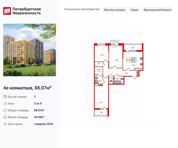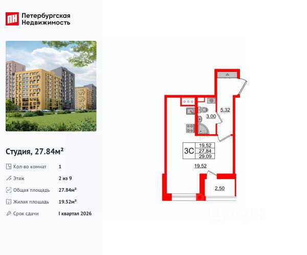 Корпус 3. Секция 2.4. Сдача дома - 1кв.2026г. Ключи - 3 квартал 2026г.