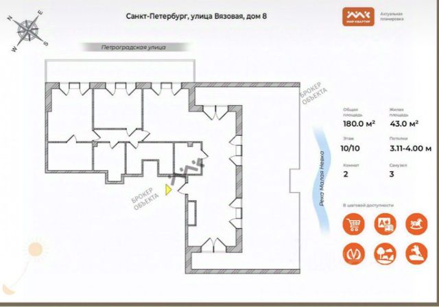 Лот: 94517. Статусная видовая квартира на Крестовском с прямым видом на воду. Планировкой предусмотрены три спальни и просторная гостиная. Прямой вид на Малую Невку. Из каждой комнаты есть выход на просторную террасу с прямым видом на воду и зелень Крестовского острова. Панорамные окна в пол в каждой комнате. Три спальни, каждая со своей гардеробной и санузлом. ЖК "Привилегия" - дом для комфортной приватной жизни на Крестовском острове. Стильные фасады повторяют отделку дорогой яхты и очертания океанского лайнера. Стеклянные экраны с широкими поручнями ограждают балконы и порождают интересную игру света и тени. Пешеходная набережная длиной более 400 метров с собственной мариной для яхт завершает впечатление. Бесшумные лифты с премиальной отделкой. На территории растут взрослые деревья, шикарные гортензии, фонтан во внутреннем дворе. Многоступенчатая станция очистки воды и собственная котельная. Парадное лобби ЖК Привилегия украшают две винтовые лестницы и хрустальный свет. Инфраструктура дома служба сервиса для жителей, ресторан с террасой, мойка с детейлинг центром в подземном паркинге, салон цветов, спа салон, детский сад.В мае 2025 откроется фитнес с бассейном премиальной сети Encore. Есть причал для яхт только для жителей "Привилегии". Большое внимание уделено вопросам безопасности: индивидуальные ключи доступа жильцов и гостей, закрытая территория с видеонаблюдением в публичных зонах: дворы, парадные, лифты, паркинг, круглосуточная охрана. В цену включено 1 место в паркинге. Дополнительно предлагаются 2 места каждое по 10 000 000. Купить квартиру в ЖК Привилегия в Санкт-Петербурге.
