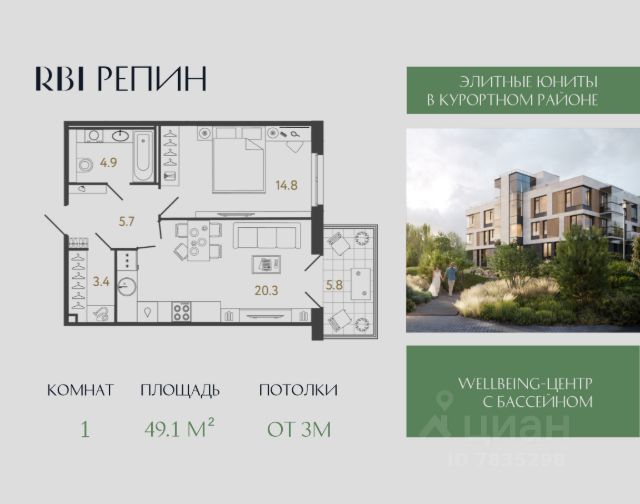 "Репин" — элитный лаунж-комплекс от RBI в Курортном районе Петербурга в посёлке Репино по адресу Приморское шоссе, 441. Шоссе считается петербургским аналогом трассы Канны Ницца Монако. Вместо пиний — сосновый лес, который сменяется открытыми морскими видами хотя и не Средиземного моря, но такого же просторного Финского залива. Проезжая по Приморскому шоссе, вы уже отдыхаете. После Репинских Пенатов дорога круто поворачивает к югу и совершает плавную дугу к западу — именно здесь в 400 метрах от залива располагаются роскошные виллы вэлнес-комплекса "Репин". Формат проживания камерный — без суеты и лишнего шума. В четырёх виллах всего 84 сити-хауса. Есть номера с палисадниками и отдельным входом, лоты с террасами и возможностью установки дровяного камина, двухэтажные юниты с двусветной кухней-гостиной, высота потолков в которой достигает 6,3 или 6,6 метров. На типовых этажах потолки 3 метра, на последнем этаже — 3,3 метра. Площадь юнитов от 45,8 до 150,7 м² — можно приобрести инвестиционный лот под сдачу в аренду или купить номер для собственного роскошного проживания. Конструкция стен продумана таким образом, чтобы вы могли реализовать перепланировку пространства вплоть до объединения соседних юнитов с сохранением высокой звукоизоляции между номерами. На территории комплекса находятся ещё два инфраструктурных корпуса — они располагаются вдоль шоссе и создают визуальный и акустический барьер для вилл. В первом корпусе находятся центральная входная группа с ресепшн и зоной ожидания гостей, ресторан с отдельным входом и wellbeing-центр, где оборудуют спортзал, бассейн, хамам и сауну. Всё, чтобы вы могли переключиться от рутины и обрести себя заново! Во втором корпусе — трёхуровневый паркинг на 60 машиномест. Ещё 10 м/м на уличной автостоянке. Все виллы — малоэтажные и размещены в шахматном порядке, чтобы вы могли наблюдать умиротворяющий пейзаж прямо из окон или с террасы своего номера. Лаконичная скандинавская архитектура вторит окружению и способствует расслаблению, а декоративная ландшафтная подсветка преображает комплекс в сумерки. Приватная охраняемая территория утопает в зелени: равнины перемежаются с живописными холмами, создавая аллюзию на пейзажный парк. Среди всей этой красоты благоустроены разнообразные лаунжи: две открытые площадки для встреч у костра и обогреваемая фуршетная зона, подиум с деревянными шезлонгами и декоративный водоём с кинетической скульптурой от Владислава Муханова и Ивана Зубарева. Дети могут играть на экологичной детской площадке во дворе, а спортсмены — заниматься на профессиональных уличных тренажёрах FOREMAN. Refresh-коплекс "Репин". Ваш источник безмятежности в лоне природы побережья Финского залива!