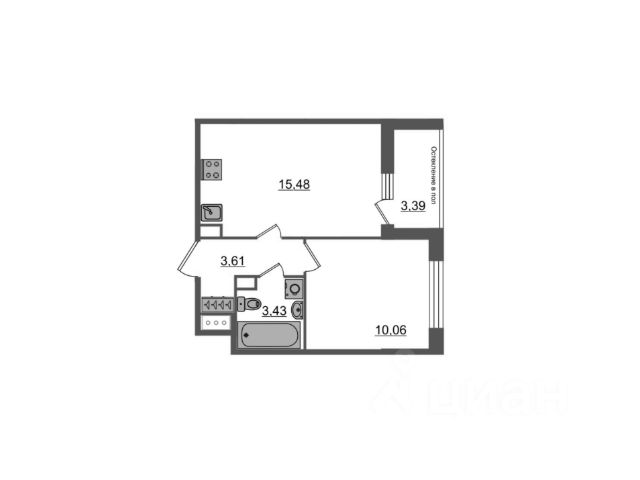 Совмещённый санузел - 3,3 кв.м.