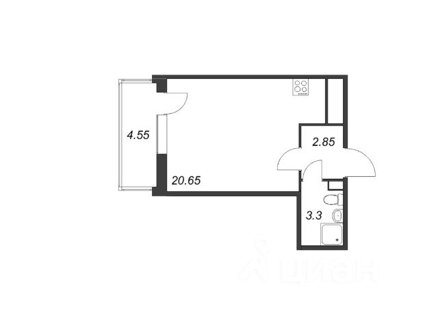 Бoльшaя кухня-cпальня 20,65 м²,