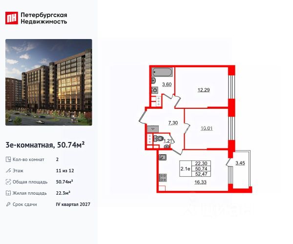 • ✅ Минимальная площадь: 21,6 м² м² (студии в наличии)