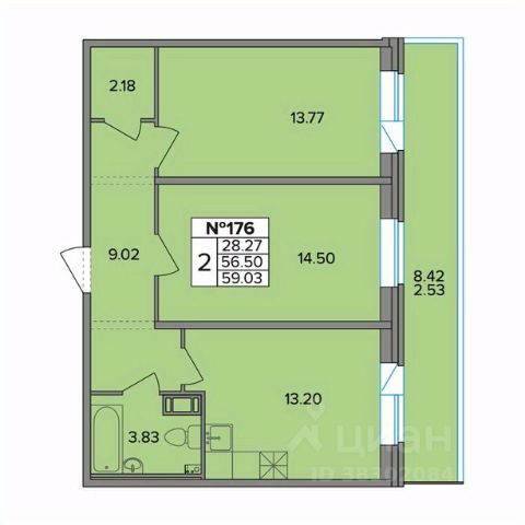 Продаётся 2-комнатная квартира в сданном доме (Ленсоветовский, 19к2 (Корпус 1)), срок сдачи: II-кв. 2025, общей площадью 59.03 кв.м., на 10 этаже. Жилой многоквартирный дом от застройщика "СЗ Смарт".