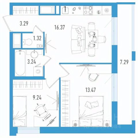 Продаётся 2-комнатная квартира в строящемся доме (Дом 1), срок сдачи: I-кв. 2027, общей площадью 51.22 кв.м., на 2 этаже. Жилой комплекс комфорт-класса "Старлайт" возводится в Красногвардейском районе Санкт-Петербурга в 300 метрах от берега реки Охта у Новоохтинского парка. Это зеленый активно развивающийся и благоустраиваемый квартал Петербурга, где природный ландшафт идеально сочетается с хорошей транспортной доступностью и развитой, сложившейся инфраструктурой. Проект состоит из двух устремленных ввысь 25-этажных современных башен и 7-ми этажного корпуса переменной этажности с индивидуальными террасами. Жилые корпуса объединены галереей-стилобатом, в которой будут располагаться магазины, пекарни, аптеки и салоны красоты - все, что необходимо современному петербуржцу. В радиусе 1,7 км от дома находятся 2 станции метро "Гражданский проспект" и "Девяткино", ж/д станция "Новая охта".