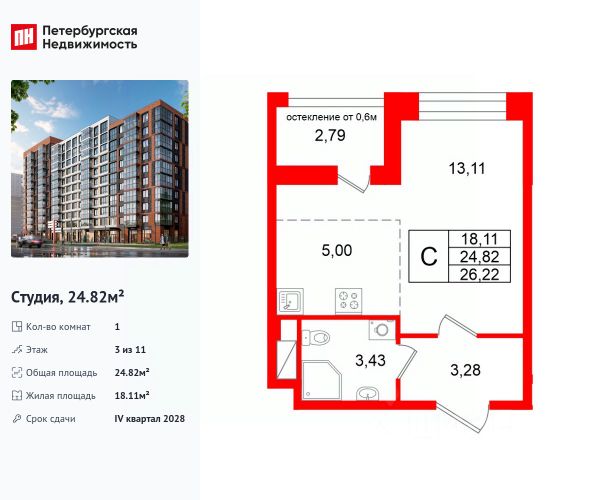 Продается уютная 2-комнатная квартира от застройщика в жилом комплексе "Титул в Московском" в престижном Московском районе. До метро можно добраться пешком всего за 25 минут. Мастер-спальня с собственной ванной комнатой. Самое приватное пространство в вашей квартире. Уникальная, функциональная европланировка, большая кухня-гостиная 17.32 м², вместительная прихожая 4.82 м². Общая площадь квартиры - 53.74 м², жилая 25.51 м², высота потолка 2.77 м. Квартира продается с отделкой "Норд Лайн серый плюс". Что особенного в ЖК "Титул в Московском"? • Престижный Московский район • Авторская архитектурная концепция • 2 центральные входные группы с ресепшн и лаундж-зонами • Кленовая аллея с арт-стеллой, цветочная аллея и сад трав • Уютные дворы-патио, площадки SetlKids и SetlSport • Инновационный Лицей Setl с оригинальной архитектурной концепцией и уникальной образовательной средой