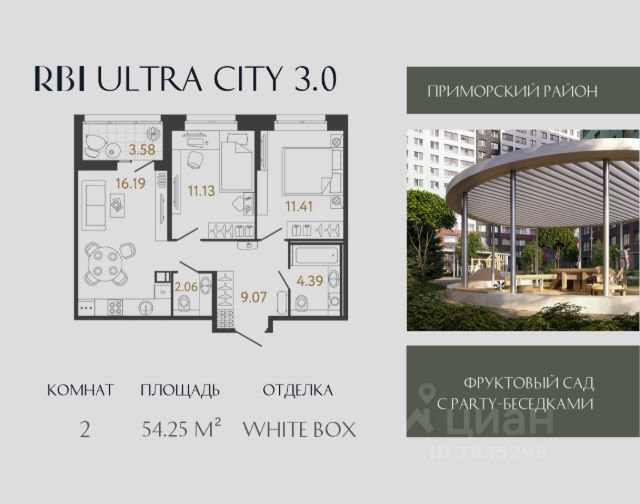 Новый ЖК Ultra City 3.0 от RBI в Приморском районе Петербурга. Современный город ультравозможностей, где мечта о гармоничной жизни за городом воплотится в мегаполисе со всеми его преимуществами. Новый проект от RBI строится в перспективной локации на пересечении проспекта Королёва и Арцеуловской аллеи в районе Парашютной улицы. До выездов на ЗСД и КАД — 15 минут. Рядом детские сады и школы, современные медицинские и спортивные учреждения, торговые центры и магазины. Прямо в доме откроется детская поликлиника, а на прилегающей территории построят муниципальный детский сад. Всего в 4 корпусах дома 946 квартир от 24 до 90 м². Планировки — от классических до "евро" с кухней-гостиной и мастер-спальней с гардеробной. Высота потолков — 2,7 метра. Все квартиры продаются с белой отделкой. Насладиться солнечным SPA среди цветущих яблонь и уссурийских груш в собственном фруктовом саду, провести online-встречу или поработать с ноутбуком в обогреваемой party-беседке с розетками под навесом. Прогуляться с близкими по фруктовой аллее до детской площадки, чтобы покатать дочь или сына на качелях, а потом с улыбкой наблюдать, как весело и увлечённо они резвятся в мега-песочнице с водяными аттракционами и решают головоломки на бизибордах — вот повседневные сценарии вашей счастливой жизни в будущем ЖК Ultra City 3.0! В каждой секции — своё лобби с витражными окнами и воздушными световыми колоннами — чтобы ощущение гармонии с природой не покидало вас и внутри дома. В каждой парадной зоны ожидания для гостей и вместительные колясочные. Для хранения габаритных вещей можно отдельно приобрести кладовую на -1 этаже, для авто — машиноместо в отдельно стоящем тёплом паркинге. Приватный двор полностью без машин охраняется 24/7, вход по электронному ключу. Можно уверенно отпускать детей на прогулки со сверстниками и приглядывать за ними со смартфона благодаря технологии "умный дом". Для занятий спортом на свежем воздухе в Ultra City 3.0 установят профессиональное уличное оборудование для кардио, силовых и wellness-тренировок и настольный теннис. Ещё одна фишка проекта — ремонтная станция для велосипедов: отладить свой двухколёсный транспорт, подкачать шины и подтянуть слетевшую цепь можно будет, не выходя из дома. Выбирайте Ultra City 3.0, чтобы каждый день ловить вайб загородной жизни в ритме мегаполиса!