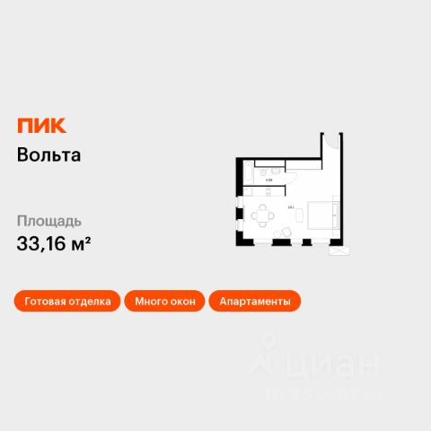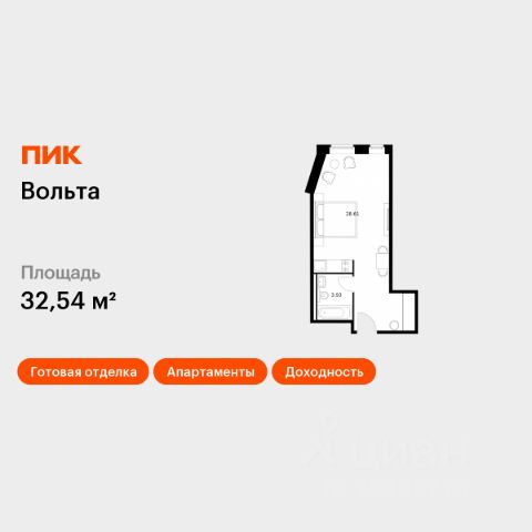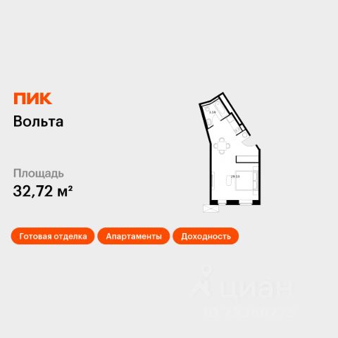 Продаются 1-комн. апартаменты площадью 37,56 кв.м на 15 этаже 15 этажного дома (Вольта, Секция 1) проекта ПИК Вольта. "Вольта" - готовые апартаменты, которые можно приобрести для себя или сдавать через профессиональную управляющую компанию "МТЛ". Она возьмёт на себя заботы по обслуживанию и сдаче в аренду на короткий и длительный срок. Проект расположен недалеко от исторического и делового центра Санкт-Петербурга. Дорога на автомобиле до Невского проспекта займёт 15 минут. До станции метро "Ладожская" получится дойти за 8 минут, до двух остановок общественного транспорта - за минуту. Рядом находятся четыре вокзала и Свердловская набережная. На первом этаже предусмотрено просторное дизайнерское лобби, ресторан, круглосуточный ресепшен и кабинет врача. Кроме того, здесь появятся такие сервисы, как химчистка, прачечная, клининг, доставка продуктов, консьерж-сервис. Для прогулок возле реки Охты благоустроят набережную. Для автомобилей предусмотрена парковка и подземный паркинг. Артикул 819071 (Застройщик АО СЗ "Ладожский") [cn_sbp_1863768]