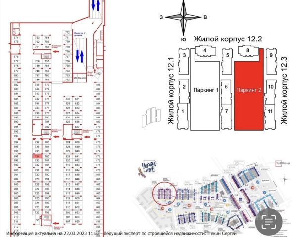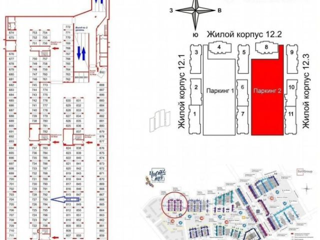 Продаю машиноместо на -1 этаже. Рядом вход от 7 и 11 парадной. место 793 на фото. Либо два машиноместа 793 и 792 по 650 000р.